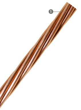 Condutor formado por fios de cobre nu, têmpera mole, encordoamento classe 2.
